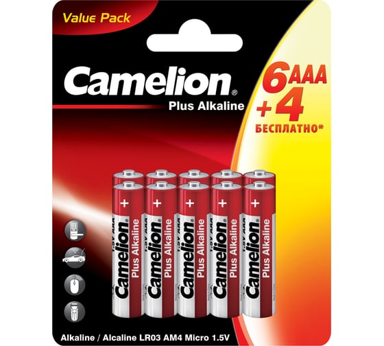 Мизинчиковая батарейка ААА CAMELION Plus Alkaline LR03-BP6+4 (LR03-BP6+4, 1.5В) 15819
