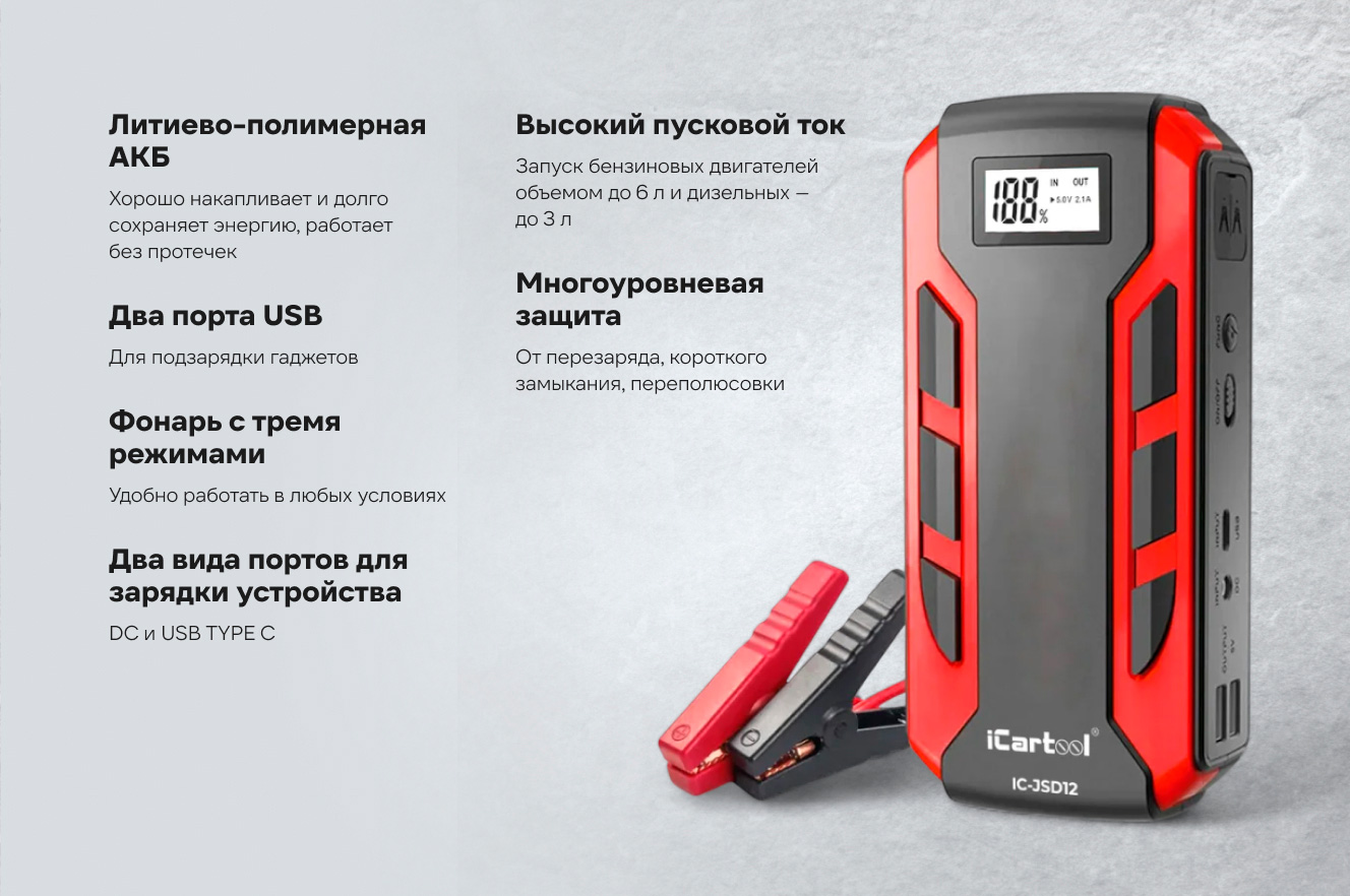 Пусковое устройство iCarTool 12 В, 12 000 мАч, 500/800 А IC-JSD12
