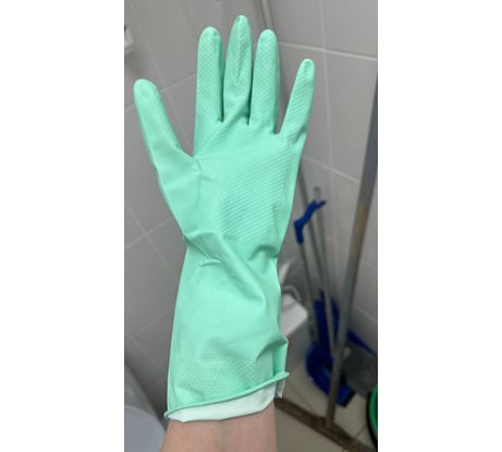 Многоразовые перчатки LAIMAЕ латексные с ароматом алоэ зеленые х/б напыление р M средний, 50г, 700545