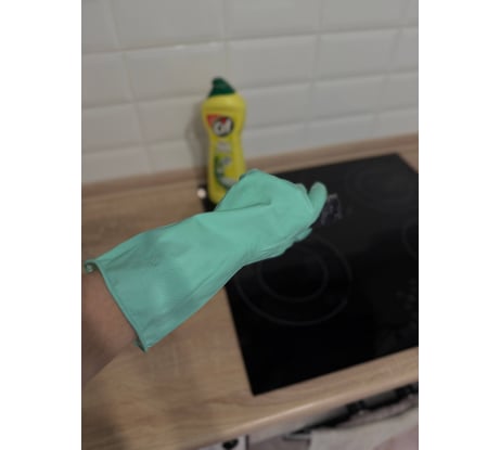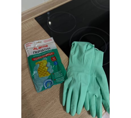 Отзывы о многоразовых перчатках LAIMA латексных с ароматом алоэ зеленые х/б напыление р M средний, 50г, 700545