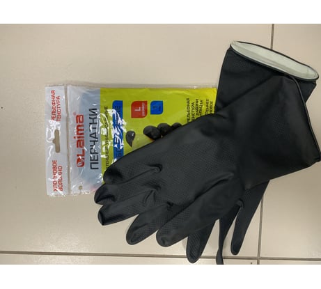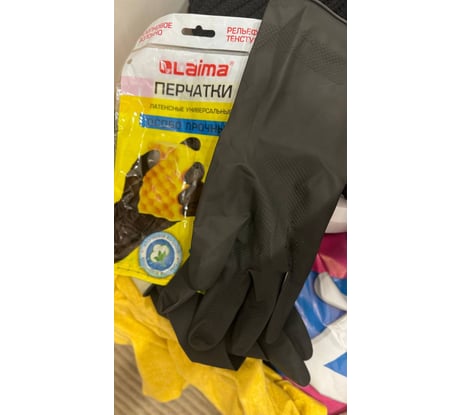 Многоразовые перчатки LAIMAЕ латексные с хлопковым волокном черные размер L большой вес 60г, 700535