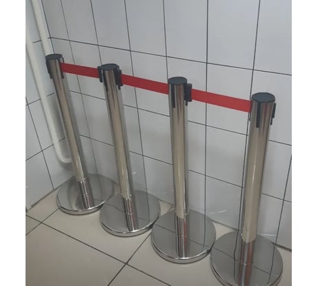 Мобильная стойка из нержавеющего металла с вытяжной лентой 2 метра. Лента выполнена в красном цвете из нейлона, ширина ленты 48 мм. Стойка предназначена для помещений с высоким уровнем посещаемости.