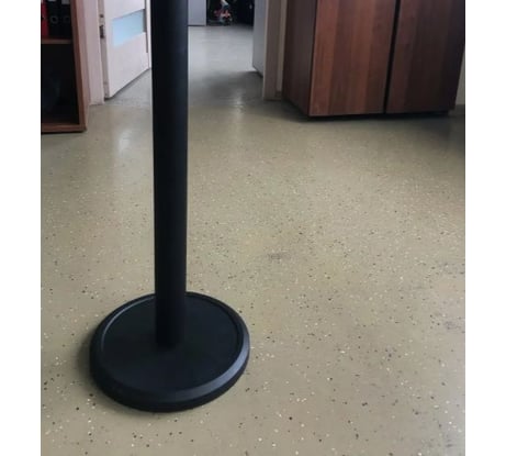 Стойка лёгкая, складывается быстро, колонка устойчивая. Переставлять удобно — колесики супер. Используем в цеху, хватает надёжности.