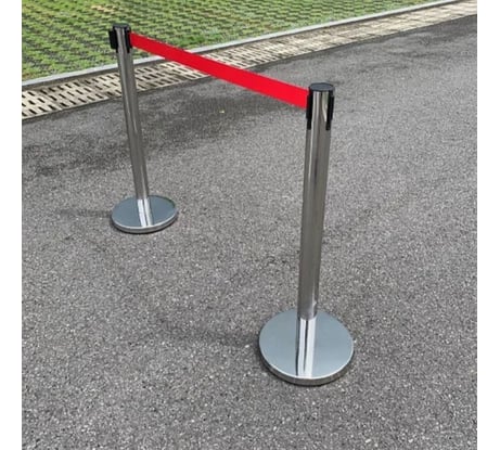Мобильная стойка из нержавеющего металла с вытяжной лентой 2 метра. Лента выполнена в красном цвете из нейлона, ширина ленты 48 мм. Стойка предназначена для помещений с высоким уровнем посещаемости.