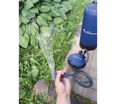 Преимуществом походного душа Pullman считается большой объем распылителя и мощная струя.