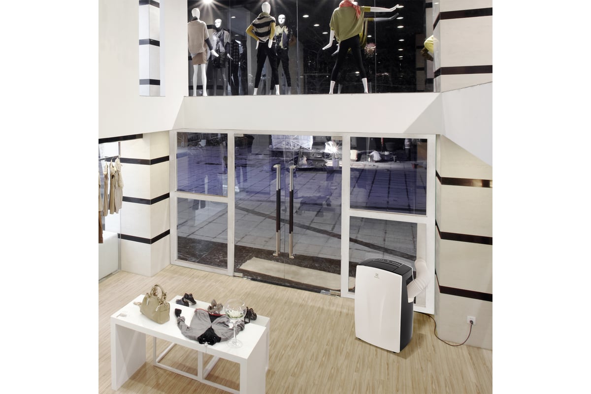 - Удобное перемещение Кондиционер оснащен шасси и ручками