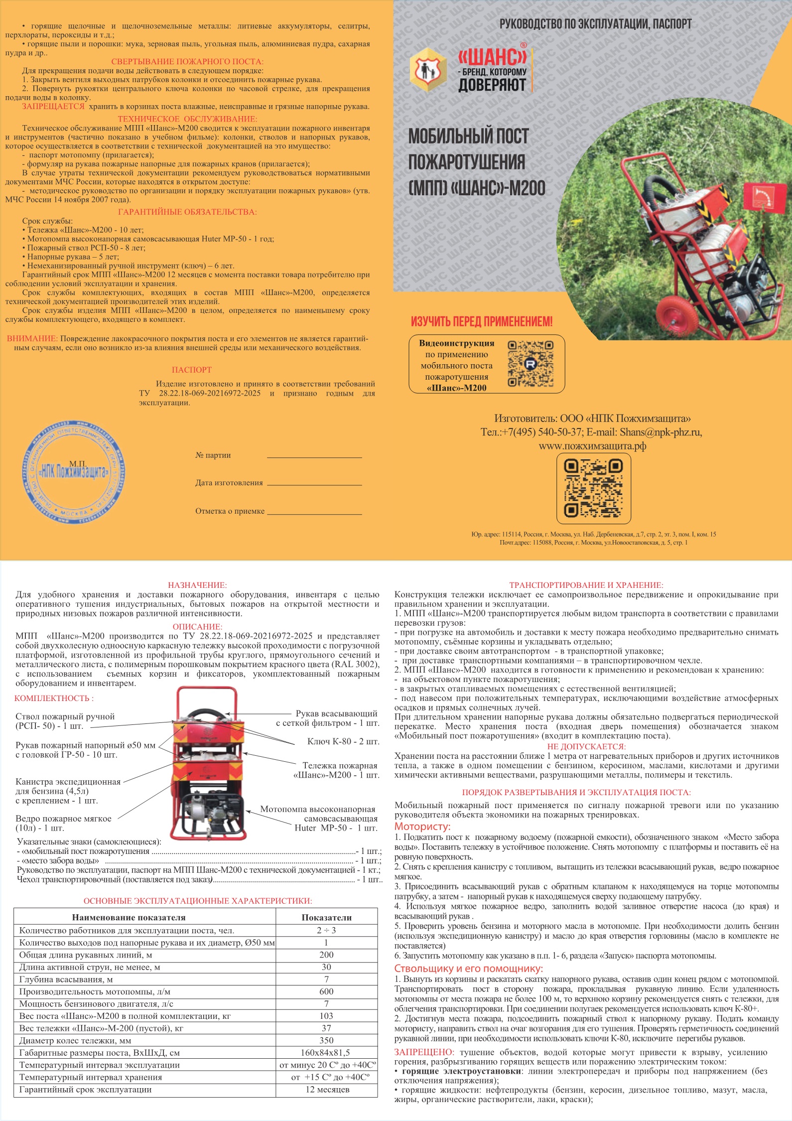 Мобильный пост пожаротушения (МПП) Шанс-М200 с мотопомпой 00-000008596