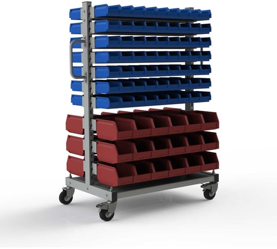 Мобильный стеллаж с ящиками МеталлКарт 204 является полностью разборным: стойки стеллажа, навесное оборудование, каждый лоток по отдельности. Покраска порошковая RAL 7035