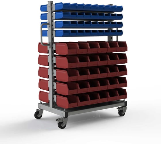 Мобильный стеллаж с ящиками МеталлКарт 206 является полностью разборным: стойки стеллажа, навесное оборудование, каждый лоток по отдельности. Покраска порошковая RAL 7035.