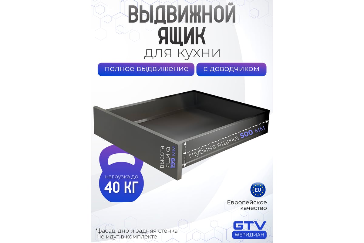 Выдвижной ящик GTV Модерн Бокс PRO L-500, низкий H-84 мм, антрацит PB-MBPRO-KPL500A