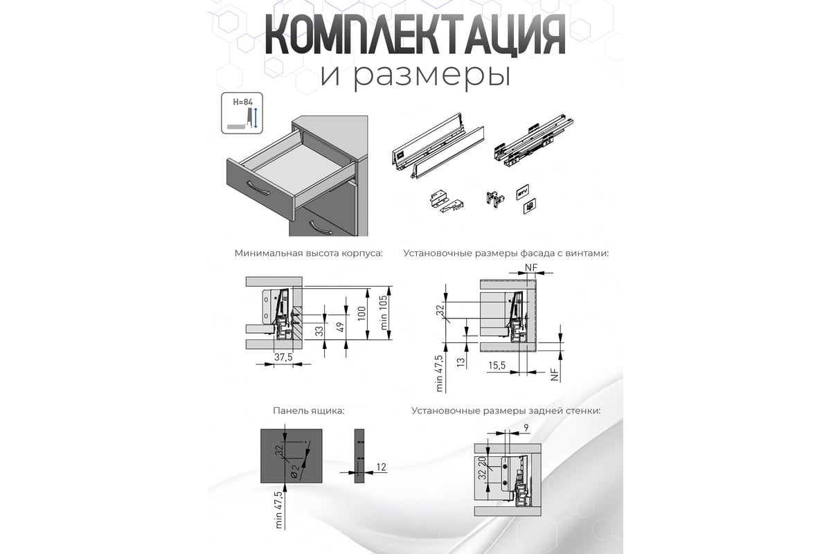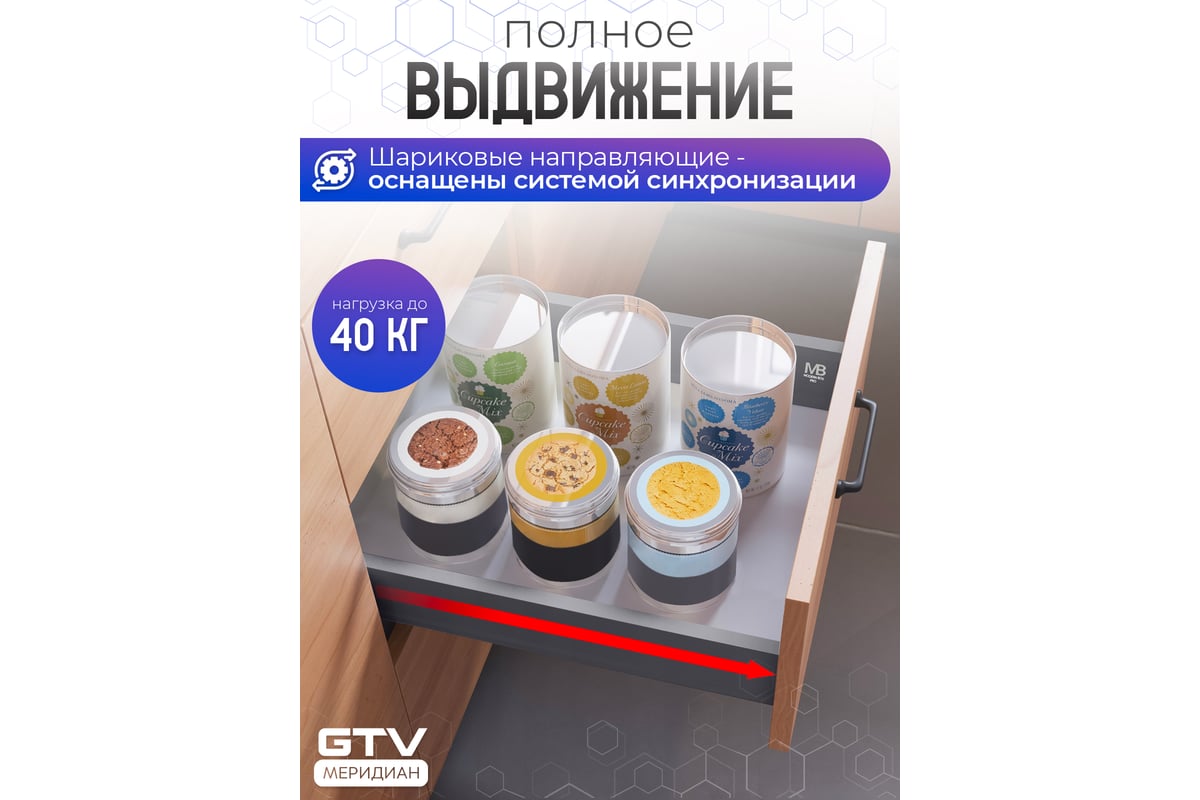 - Полное выдвижение, обеспечивающее удобный доступ к содержимому ящика