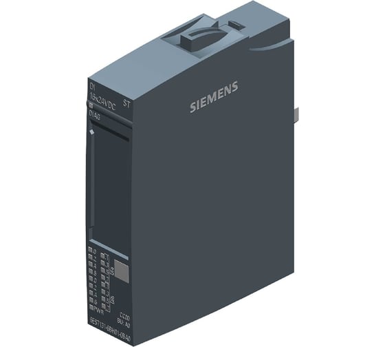 SIMATIC ET 200SP, модуль дискретных входов, DI 16x 24V DC ST, со стандартными функциями, тип 3 (IEC 61131), вход PNP, (sink, P-reading), упаковка из 1 шт., для установки на базовый блок типа A0, цветовой код CC00, входная задержка 0,05..20 мс, диагностика обрыва провода, диагностика напряжения питания