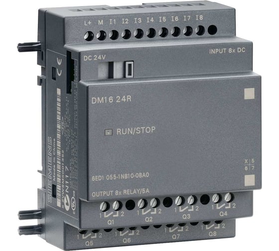 LOGO DM16 24R - модуль расширения входов-выходов: 24V DC/24V DC/реле. Включает 8 цифровых входов и 8 цифровых реле-выходов. Занимает 4TE монтажного места. Идеальное решение для расширения функциональности вашей системы.