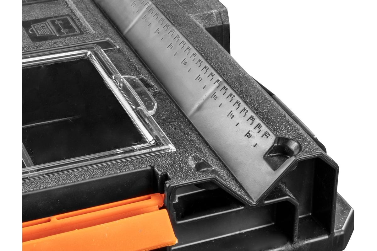 Начну с того, что ящика NEO это точная копия ящиков другого польского бренда с красной отделкой (Q..K), но с одним небольшим но значимым для меня плюсом. О нем позже. Ящики огромные. Взял две идентичные системы разных производителей запихал в них все и места осталось много. Алмазныя дрель, штроборез, 2 перфоратора, болгарка, зарядник для аккумуляторов (не маленький) и два 18 вольтовых аккума, спецовка, прожектор, фонарь ну и метизы и расходка... И это все я только конкретно о наборе neo. И куча места еще свободного. А еще на нем можно стоять и часто я использую его вместо стремянки, не говоря уж о замене стола или стульев на объектах. С вышеупомянутым брендом они разнятся цветом отделки и у NEO на всех ящиках с глухой верхней крышкой есть дополнительные застежки для соединения с более маленькой серией ящиков. Для меня это стало ключевым моментом в выборе в пользу NEO. Во-первых ранее купленные ящики разного размера другого бренда оказались в некоторых конфигурациях несовместимы между собой, но совместимы идеально с NEO. Перекинул местами крышки от разных брендов и получил два полностью совместимых комплекта ящиков. Еще одним плюсом в пользу NEO оказалось наличие резинок на съемных переборках ящиков. У конкурента они есть не во всех моделях, как я понял. В моих их не оказалось. И третье отличие, тоже важное - крепление между собой в трех точках. По бокам и сзади. При передвижении в наклоненном виде они не рассыпаются между собой. В интернете есть видеообзоры и презентации обеих систем хранения, где по прозрачным крышкам лупят молотком. Я пробовал повторить. Выдерживают. Стоять на них можно точно не переживая. На столько понравился бренд, что купил не дешевый их нож просто чтобы на работе бутеры порезать на обед и тоже остался доволен потому как не только колбасу резать им приходилось. Поляки молодцы.