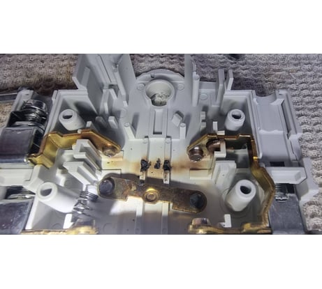 Сгорел сначала ноль (сделал напрямую так как морозы), а позже и фаза. Вводной автомат 25А. Перегрузить 63 амперный переключатель врядли удалось бы. Разобрал перед тем как утилизировать. Не экономьте! Во ВИ есть бредовые реверсивные переключатели, добавьте денег. Обрыв нуля в трехфазной сети не шутки.