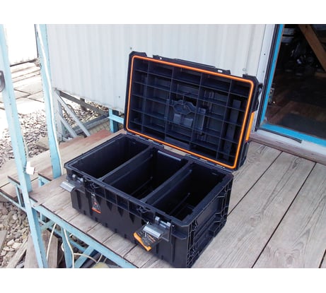 Отличный ящик, действительно мощный пластик, можно использовать как приступок при монтаже, запас прочности с лихвой, стыкуется с Кубриком один в один (на фото он второй снизу с красными защёлками, у Нео они оранжевые), купил его последним, фото старое, на нём его нет, своих денег стоит, но хотелось бы подешевле.