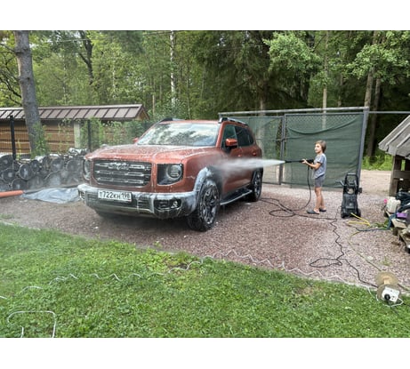 За свои деньги (12к) идеальна. У соседа брендовая за 30к - говорит один в один. Только он докупал комплект для пены и переходники с фильтрами. Тут все в комплекте. Это не аналог к5 точно. Да, шумновата, когда отпускаешь подачу. Привык. Отмыл без проьлем водохранилище, ЛОС Астра4. Машину мою двухфазной мойкой. Никакой сложности. Даже обезжиривать не надо дополнительно. На участке незаменимый помощник. Рекомендую 👍. Идеальное соотношение цены и качества.