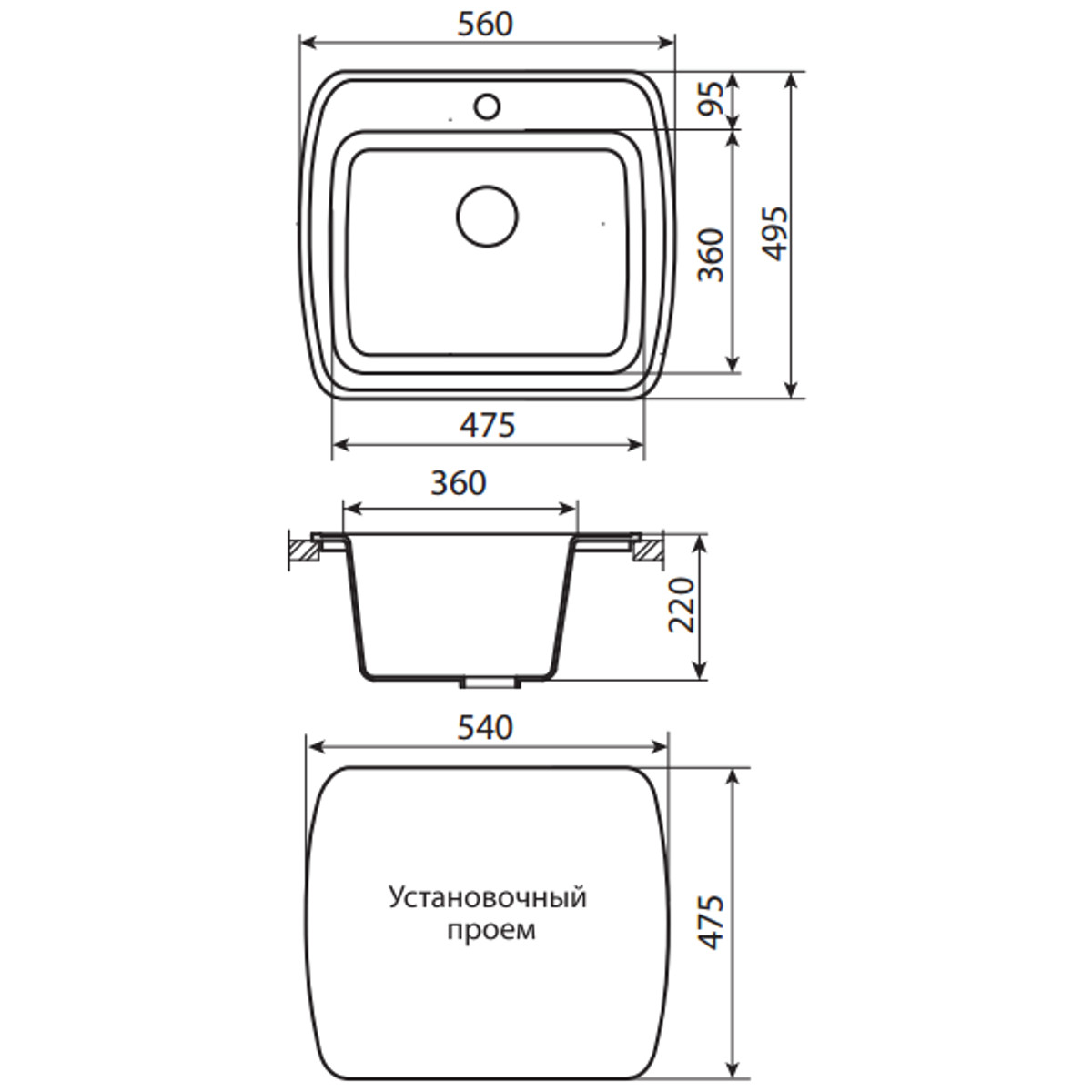 Поставляется в комплекте с сифоном и уже имеет разметку для вырезания отверстия под смеситель.