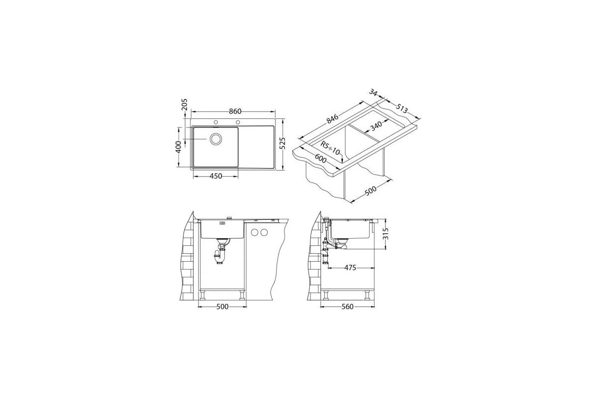 Мойка ALVEUS PURE 50L KMB-90 860х525 мм, 1X левая, в комплекте с сифоном 1127252 1103652