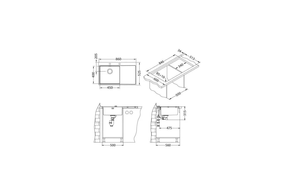 Мойка для кухни ALVEUS PURE 50L new KMB-90 860x525 левая в компл. с сифоном 1149517