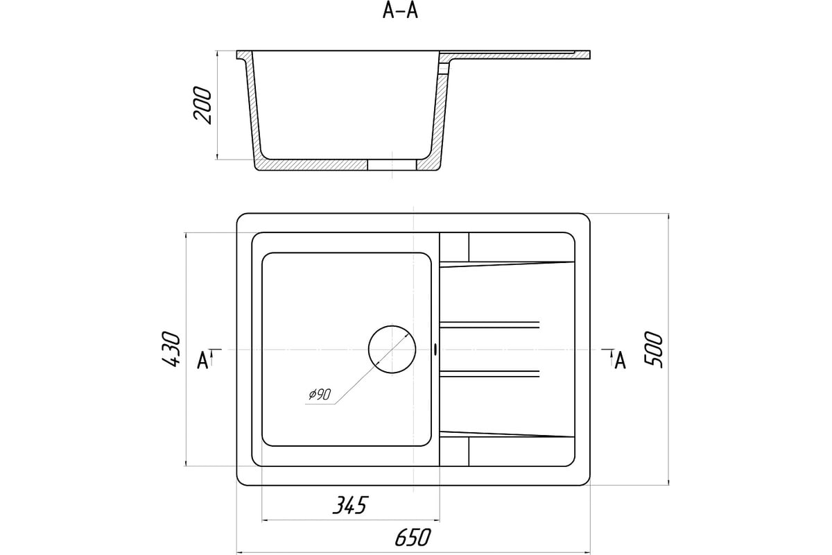 Небольшая прямоугольная мойка с крылом строгого лаконичного дизайна облегчает мытье и сушку посуды, оставляя свободное пространство на рабочей зоне кухонного стола.