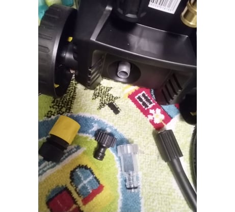 Первый недостаток: инструкция не соответствует действительности. Входной и выходной разъём не соответствуют тем, что на мойке! Выходной - алюминиевый для шланга рвд на пистолет, входной - пластиковый на шланг подачи воды. Резьбы отличаются и перепутать невозможно - на вход всего есть 2 размера резьбы (под комплектный фильтр или под быстросъёмный переходник), на выход резьба где-то между резьбами на вход, т.е. накрутить неправильно невозможно. И тут инструкция врёт, ведь разъёмы стоят на мойке наоборот, чем по инструкции. Забор воды с бочки спереди мойки, выход на пистолет сзади. Далее... На фото видно штуцер быстросъёма для входного разъёма (не комплектный), по идее производителя надо на разъём накрутить прозрачный фильтр, потом жёлтый разъём быстросъёма. НО! при этом вся конструкция фильтр+быстросъём слишком торчит из корпуса и 100% он будет работать на излом. Поэтому проще накрутить на входной разъём мойки штуцер быстросъёма и на него уже сажать коннектор для всаса. Комплектный коннектор быстросъёма (жёлтый) не просто коннектор, в нём встроен обратный клапан, но толку от него никакого, т.к. при замыкании его с штуцером (как на чёрном не комплектном на фото или комплектным на прозрачном фильтре) клапан принудительно открыт всегда и не работает, какой в нём смысл - не понятно. Клапан в случае нашей мойки нужен для того, чтобы шланг подачи воды (например из бочки) всегда был с водой и, логично, что комплектный коннектор будет просто висеть на конце шланга в бочке либо покупать обратный клапан, который работает всегда, будучи замкнутым или разомкнутым в разъёме и, лучше если будет подпружиненный, комплектный клапан в коннекторе без пружины и вода просто уйдёт из шланга при отключении от бочки. Исходя из этого, фильтр тоже должен быть не у мойки, а на конце шланга в бочке после клапана, чтобы шланг всегда был чистым, но комплектный фильтр для этого не подходит, т.к. его конструкция не позволяет накрутить на него переходник (вставка фильтра мешает). Обобщая отзыв: 1- всё так то хорошо (но пока нет испытаний, погода не позволяет))); 2 - инструкция не соответствует действительности по подключению; 3 - не продуманная и не работающая система подключения входного шланга на бочку с завода, требующая переделки (благо в фикспрайсе есть наборы садовых коннекторов и можно собрать правильно); 4 - защелка на заднюю стенку мойки для секций труб пистолета на 3 ячейки, в комплекте 2 секции, зачем сделали 3?, для 2-х была бы не такая хлипкая (одна точка крепления у неё).