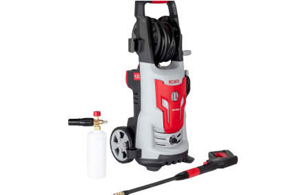 Мойка работает от сети и оснащена двигателем мощностью 2500 Вт. Рабочий расход воды составляет 420 л/ч, подача осуществляется под давлением 13 МПа. Воду можно брать из водопроводного крана с максимальным давлением до 0,4 МПа или любой емкости. Устройство оснащено фильтром для грубой очистки воды. Модель отличается наличием профессионального пеногенератора, который упрощает задачу создания плотной пены для более эффективного удаления грязи с поверхностей. Мойка также оснащена барабаном, на который можно легко и быстро намотать шланг высокого давления. Шланг имеет длину 8 м, это позволяет при необходимости вымыть машину или удаленный объект без частого передвижения агрегата.