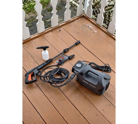 Первая домашняя мойка. 190 бар дует на особо сильно, пистолет спокойно удерживается в одной руке. Сам сосет воду из емкости, работает не очень громко. Две насадки, круговая и плоская. Пеногенератор не является таковым, открываем инструкцию на 10 странице и внимательно читаем. В целом доволен, если что-то произойдет сразу отпишусь.