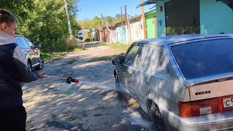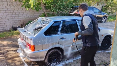 Хорошее впечатление от качественного товара. Давление конечно не как на майках самообслуживания, но близко. 2 машины в семье, велосипеды, двор и много ковров и если все плюсануть то она уже за пол года отобьет цену.