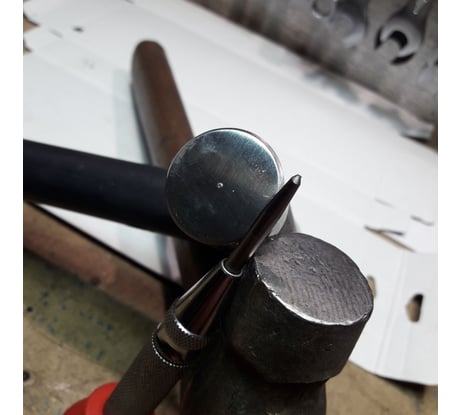 Для сравнения,взял молоток которому сто лет в обед.Автоматический кернер сел,не оставив следа.Заточил,опять сел.Взял этот который за 1000 р.Заточил,ударил по этому чуду,лунка есть,кернер не сел.Ударил раза три по выколотке с круглым концом,не особо сильно,появились чуть заметные вмятины.Сдать бы обратно,да уж накернил,пёс с ним.Шканты забивать пойдёт.