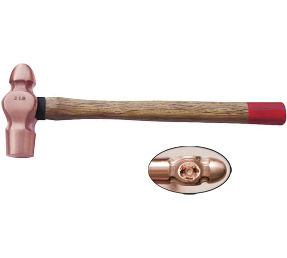 Молоток медный X-Spark с круглым бойком с деревянной рукояткой медный 2205B-1008