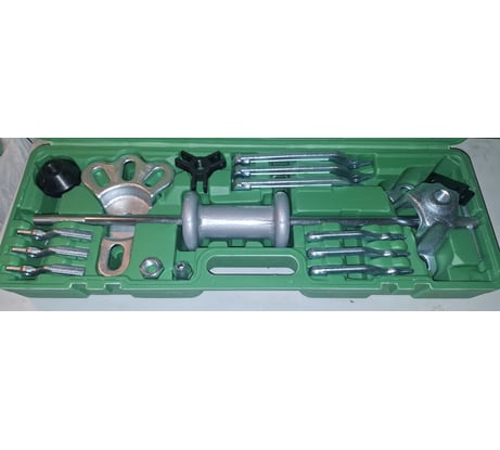 Весьма универсальный набор для съема как "внутренних" так и "наружных" подшипников, а так же в комплекте "крючок", адаптер с шурупом, два адаптера под разные колесные ступица, а так же адаптер под зажим(струбцину). При этом подшипники можно как выбивать обратным молотком так и "вытягивать" винтами из комплекта.