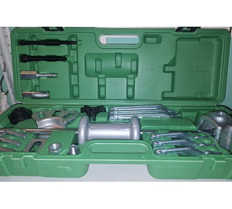 Этот набор удобен в работе и благодаря различным фиксирующим болтам и центрирующим насадкам, является универсальным. Подходит для большинства марок и моделей легковых автомобилей, а так же для различных задач по демонтажу деталей