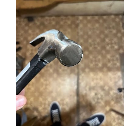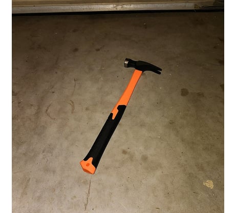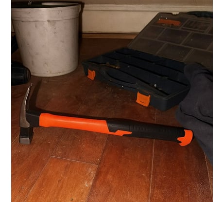 Простой молоток, который я таскаю всегда с собой на ремонт. Хороший захват и удобная рукоятка, не устает рука. Удар мощный и точный. Плюс вес оптимальный, чтобы не жалко и не тяжело.