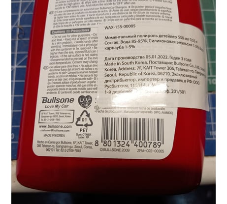 Моментальный полироль Bullsone детейлер 550 мл WAX-155-00005