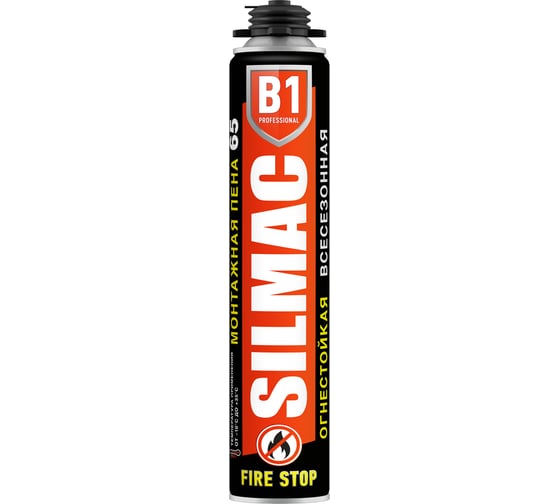 Противопожарная Всесезонная профессиональная монтажная пена SILMAC B1, 850 мл (-10C до +35C) PF-0007/117/735