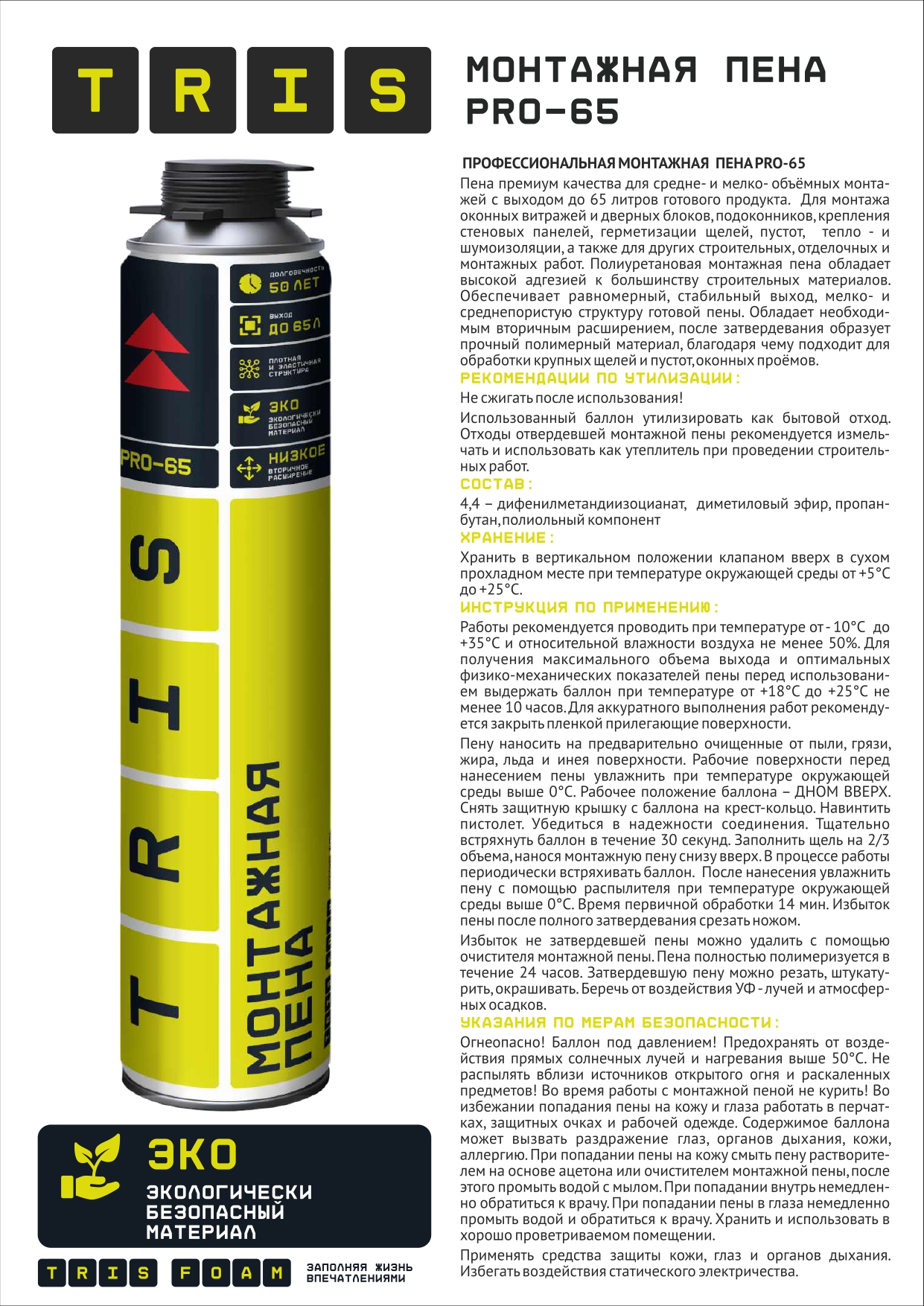 Монтажная пена TriS PRO-65 профессиональная ПМ02