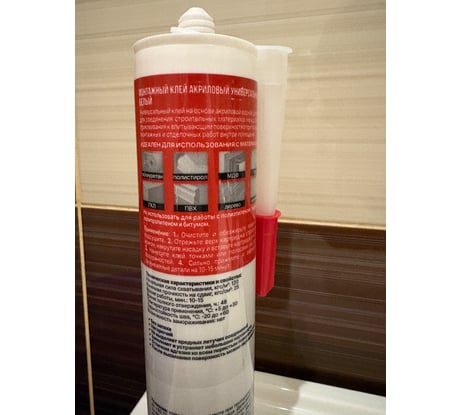 Монтажный клей акриловый универсальный, белый Контакт 280 мл 24499 на основе акриловой водной дисперсии для соединения строительных материалов между собой и приклеивания к впитывающим поверхностям при проведении монтажных и отделочных работ внутри помещения.