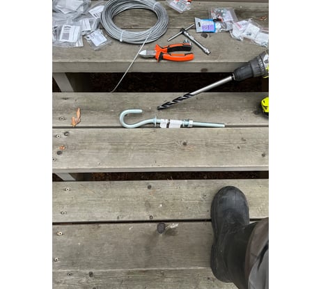 Добротный крюк, но длины резьбы не хватило. Пришлось накидывать гайки ;-)