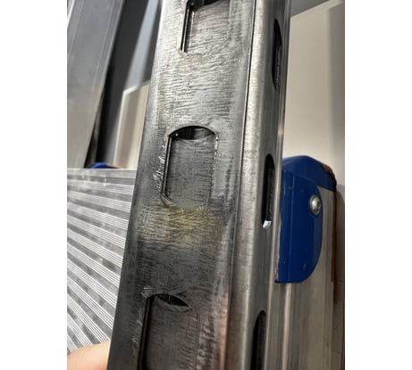 Видимо, отверстия делаются выштамповкой уже на оцинкованном металле. Или же ранее, но потом на финальном изделии проходят обработку. На выштамповке, скорее всего, остается торчащий край (выдавленный), который потом стачивается. Стачивается, бесспорно, доволно аккуратно, только вот со слоем цинка и там будет ржаветь. На фото показал как смог, видно, что по краям отверстий есть сточенный металл. И так на кажом отверсти + царапины от стачиваюшего инструмента на плоскости.