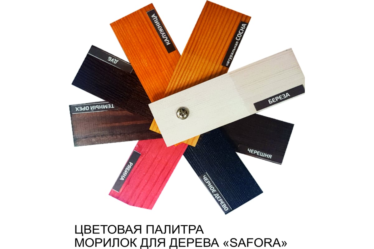 Морилки для дерева SAFORA это тонирующие составы, с помощью которых древесине можно придать практически любой оттенок. При этом текстура дерева становится еще более заметной и выраженной. Совместима с любым финишным покрытием таким как воск, масло, лак. Безопасна для декорирования игрушек.