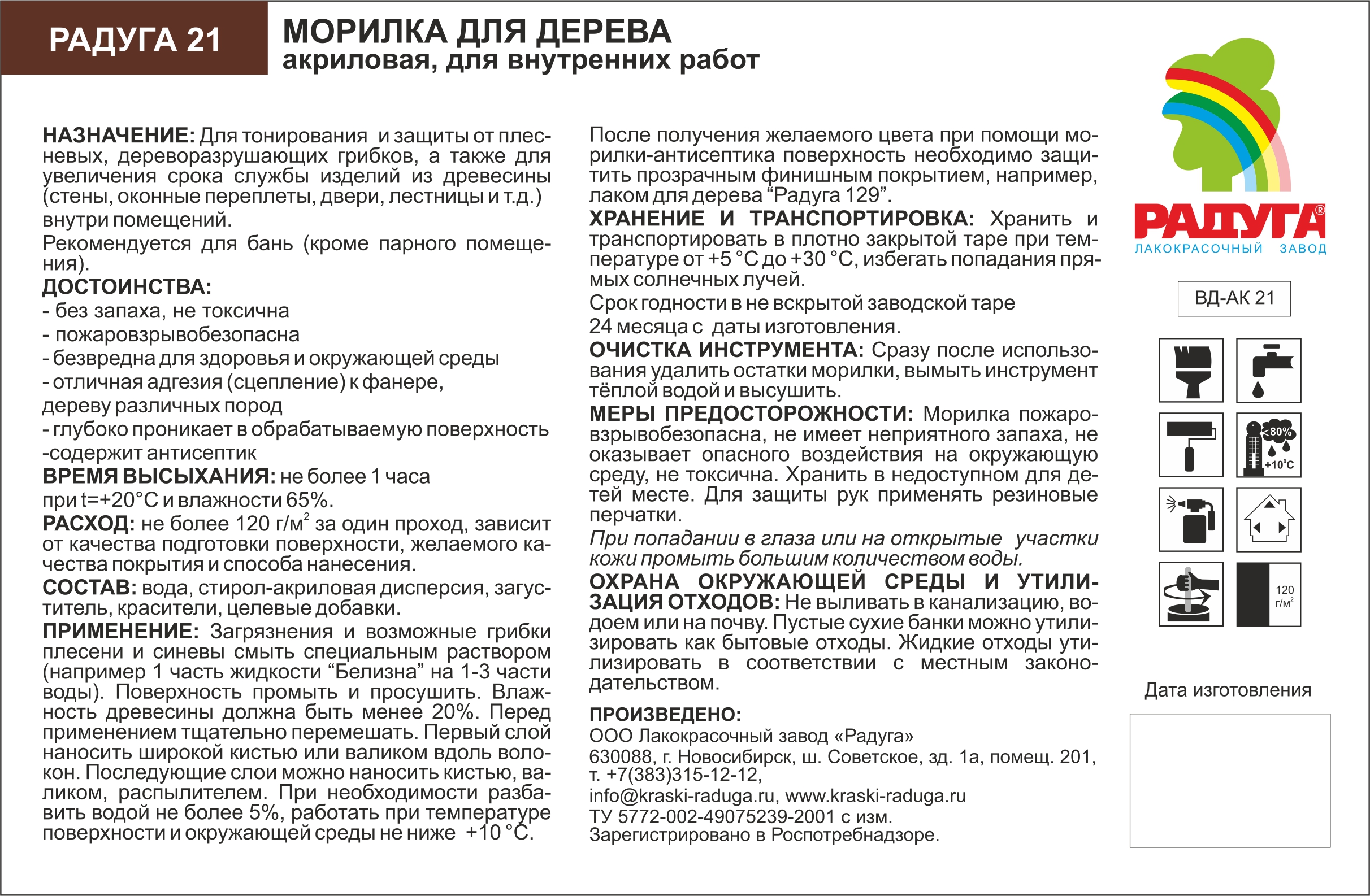 Морилка предназначена для тонирования и обработки древесины, защиты от плесени и дереворазрушающих грибков. Служит пропиткой для дерева. Увеличивает срок службы деревянных поверхностей (стены, потолки, двери, полы ). Рекомендуется для бань, кроме парного помещения. Для внутренних работ. Морилка от производителя Радуга цвет орех.