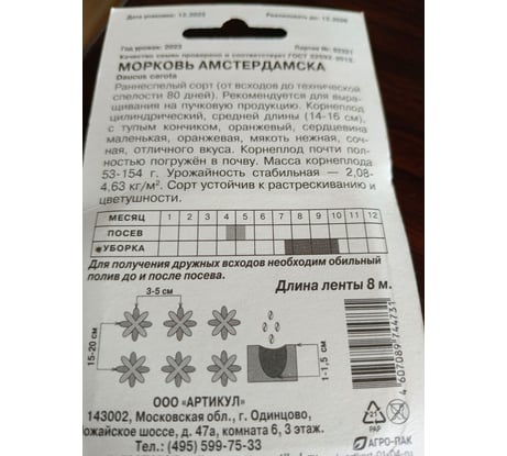 Морковь АРТИКУЛ Амстердамска раннеспелая 4607089744731