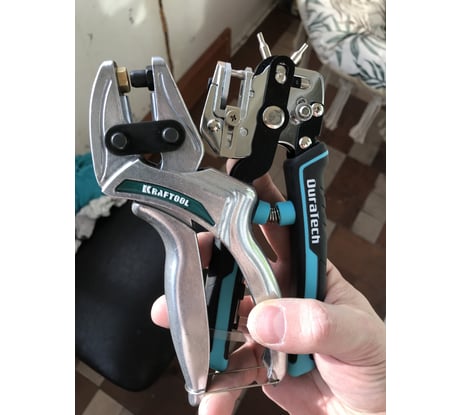 Пробойник довольно прикольный. Из алюминия - очень легкий. Сменные насадки-пробойники качественные, с резьбой м8х1,0. Ключ в комплекте. Насадкой 6мм в коже толщиной 4,5мм пробивает только так.