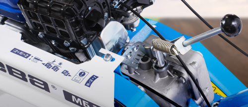 Рычаг переключения передач расположен на редукторе. Передачи легко и бесшумно переключаются. Рукоятки руля имеют независимую регулировку, что особенно важно при нарезке борозд.