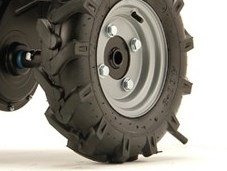 - Пневматические колеса с сельскохозяйственным протектором дают возможность работать как с передним, так и задним навесным оборудованием.