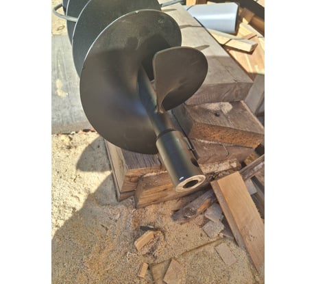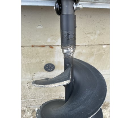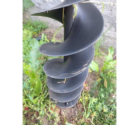 Шнек на 200мм двухзаходный, отличный металл, тяжёлый, удачное соединение (м8, шестигранник, без люфта), использовал с удлинителем Huter 1м, бурил в "одну каску" с помощью самодельной стойки, бурил на 1.4м, под столбы забора, корни/доски/камни/куски кирпича всё выдержал. Отличный аппарат!