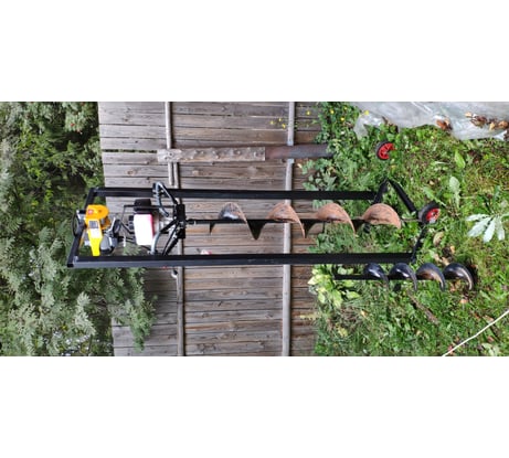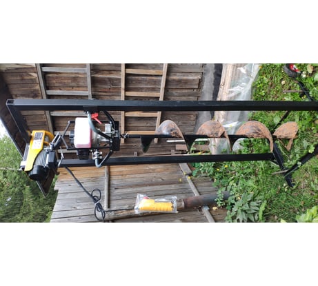 Сожгли 1,1 л бензина -обкатали. Дали остыть...и понеслось.....23 шурфа глубиной по 700мм и на 200мм - без проблем ! После обеда столбы забора под сетку... на месте ! Жена довольна ! Попросила ямки под кусты - Легко ! Соседи в зависти. Пришлось и им пробурить 11 ям. Результат: Я и наследник -в почете.....Сталоне нервно курит.