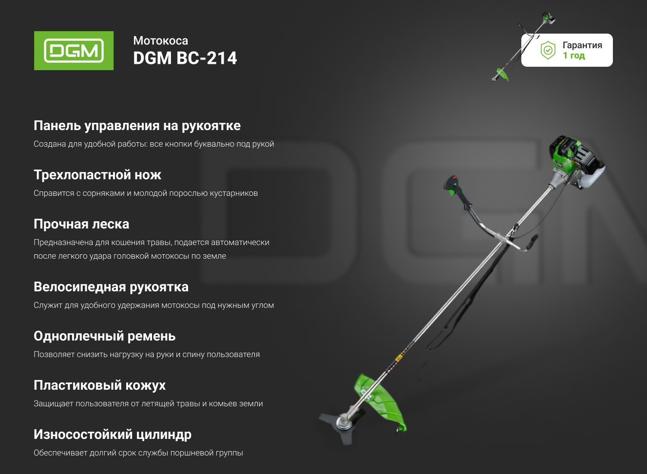 Мотокоса DGM BC-241 - мощная модель для продвинутых пользователей, которые по достоинству оценят внушительный потенциал.