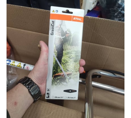 Всё отлично, комплектация расширенная. Оригинальный Stihl, не для китайского рынка, всё описание на шильдиках на английском языке. В комплекте сама коса, головка под лёску черно-белая, нож для травы, защита ножа при переноске, два защитных кожуха под нож и под лёску, защитные очки, подвес ранцевого типа с металлическим кольцом на спине.